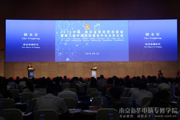 今日(9月22日)上午,2015中国·南京金秋经贸洽谈会暨第八届中国国际服务外包合作大会在金陵会议中心正式开幕。作为IT教育行业突出品牌,南京新华电脑专修学院受邀参加此次大会。