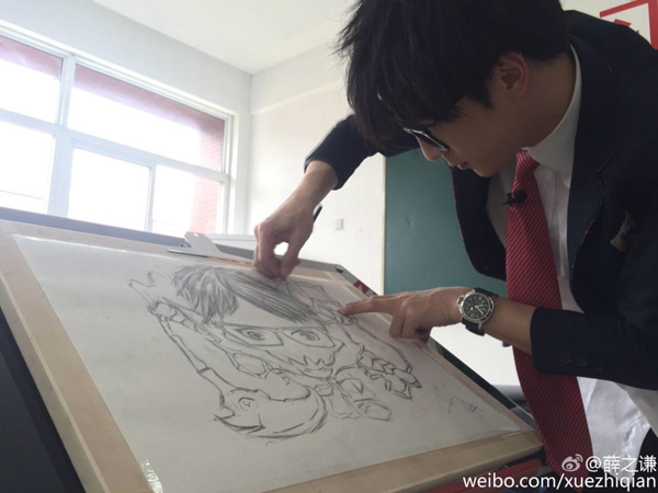 瞧瞧我们的薛同学,亲身演绎什么叫全能艺人,段子手薛也是文艺青年,化身画界大触,画家薛全新亮相新华电脑学院,不仅歌唱的好,段子说的棒,手握画笔,全神贯注的作画也是有模有样,就是这么厉害~