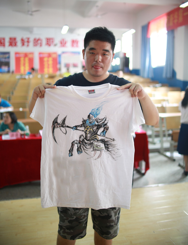 据悉,此次比赛分为在T恤上设计、绘画、上色几个环节组成。选料、调色,创作、填色......参赛同学们各显身手,场面分外热烈。在图片设计环节,参赛同学们分别围绕着青春元素、动漫元素、个性展示等几个主题来创作自己的作品,展现了他们的创作激情和蓬勃朝气;在绘画环节,铅笔起草,画笔上色,选手们紧张而有序地进行创作。