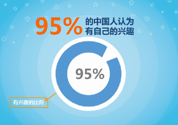 一直以来关于中国人到底有没有兴趣,大家争论不休,很多人都说中国人根本没有兴趣,也有人觉得中国人的兴趣都是“大而泛”的跟风式兴趣。口说无凭!来看看这份新鲜出炉的《中国兴趣报告》:有95%的中国人认为自己有兴趣。数据告诉你,中国人,是兴趣广泛的一群人!