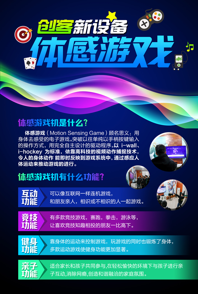 顾名思义:用身体去感受的电子游戏。突破以往单纯以手柄按键输入的操作方式,用完全自主设计的驱动程序。
