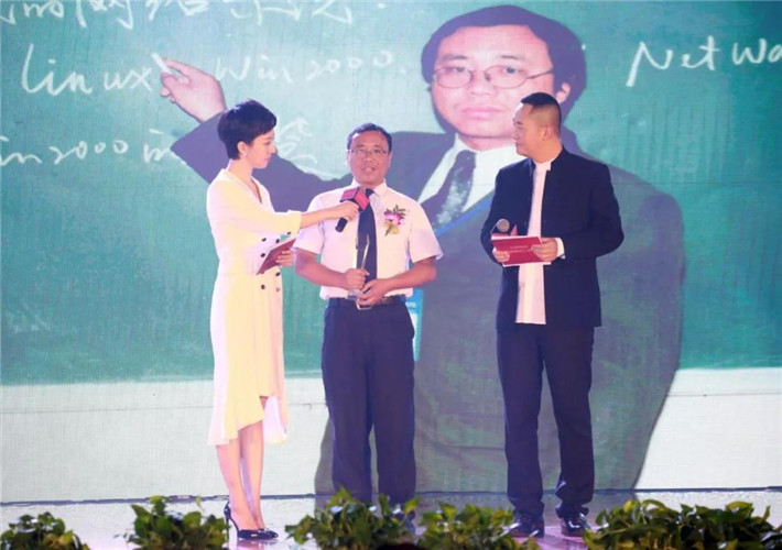 新华教育集团董事长吴伟为忠诚奉献获奖者颁奖。